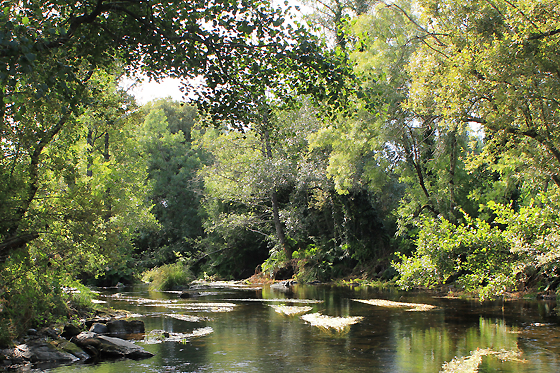 Zona do río Ulla próxima ó muíño de Galegos onde había antano uns pasos para cruzar dunha beira á outra |